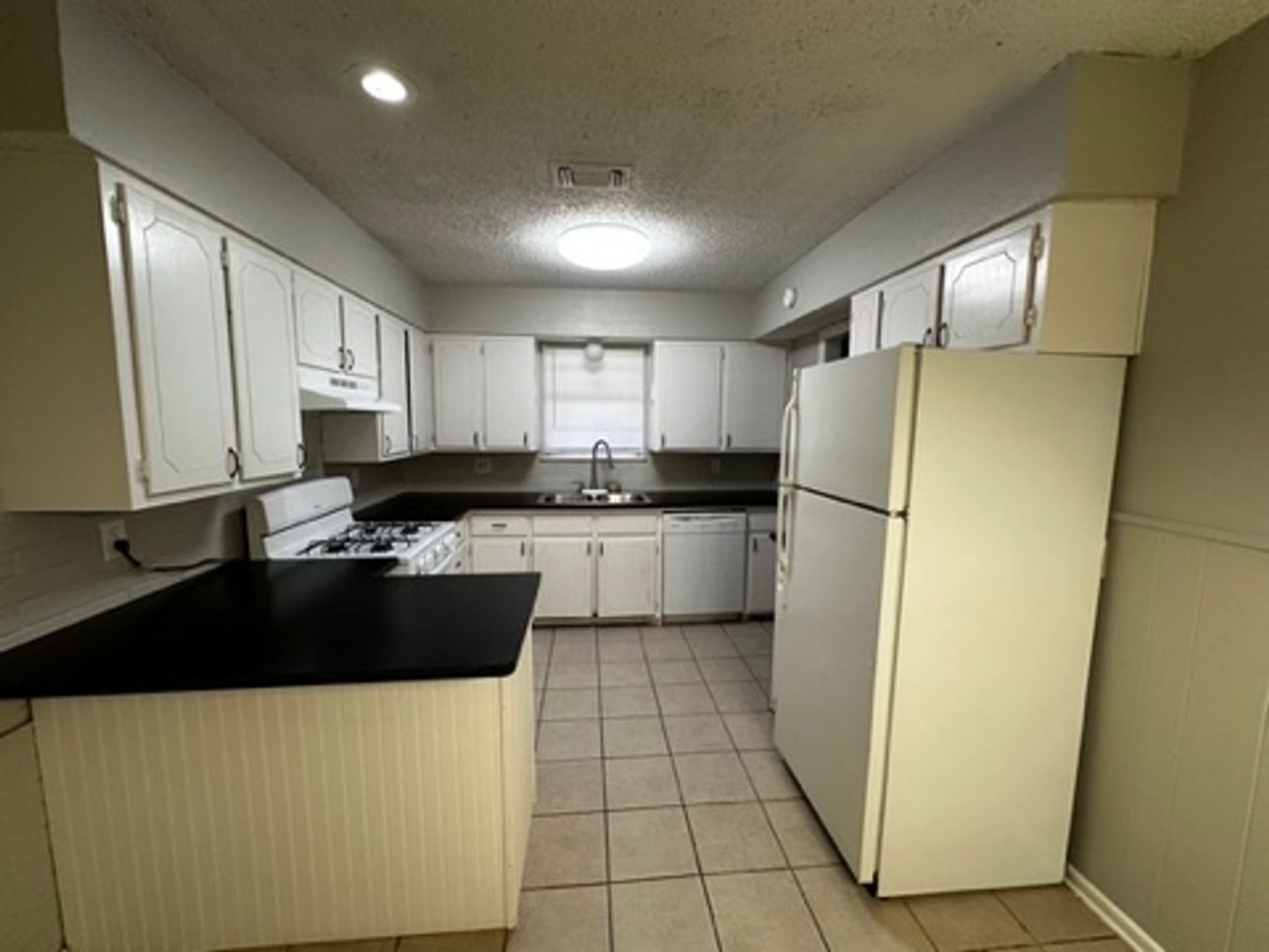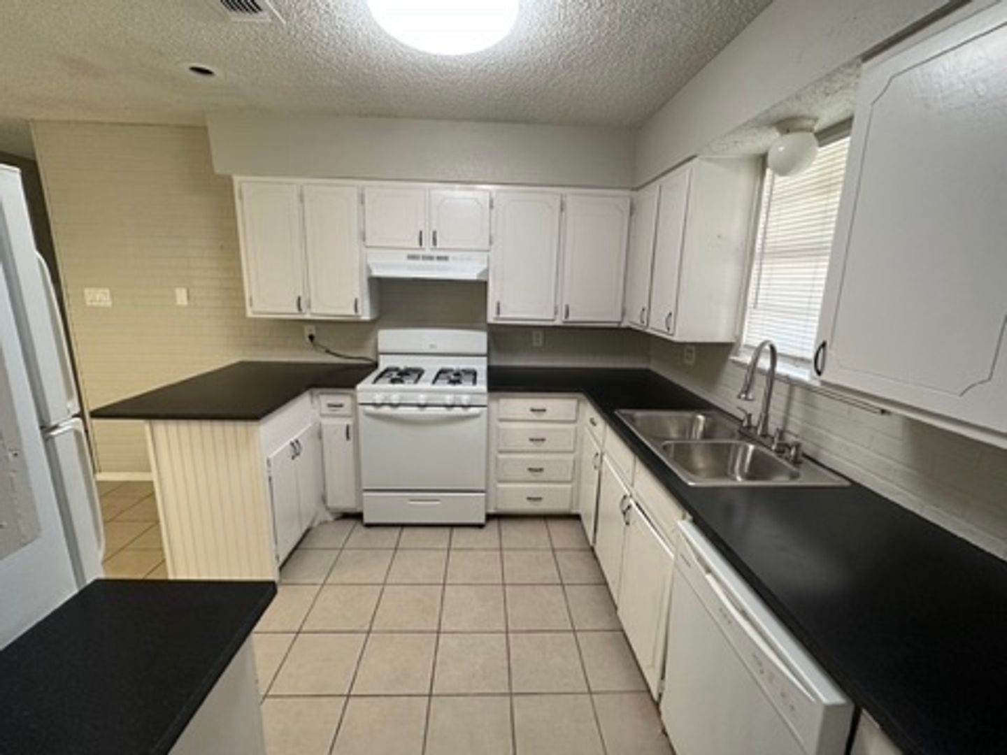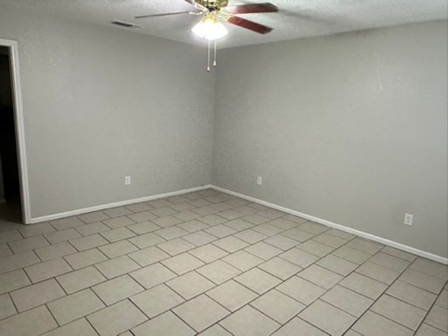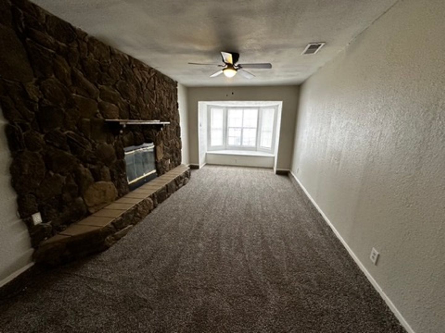 Spacious and inviting 3-bedroom, 1-bath home with two living areas and a fireplace. Features include tile flooring throughout main areas, carpeted bedrooms, a generous kitchen with ample counter space, laundry room with washer/dryer connections, and a large fenced backyard with covered patio and storage shed. Located within walking distance of a park and elementary school.