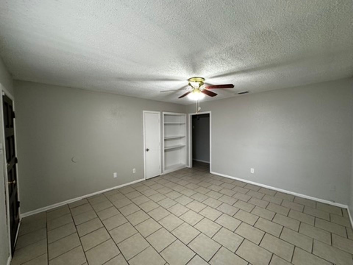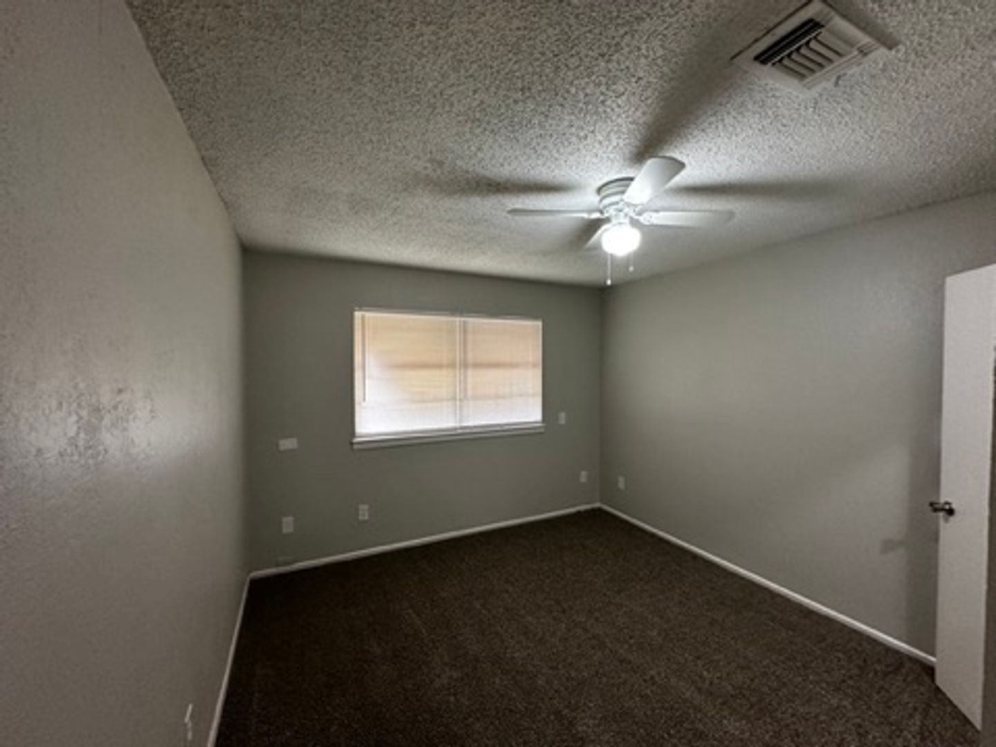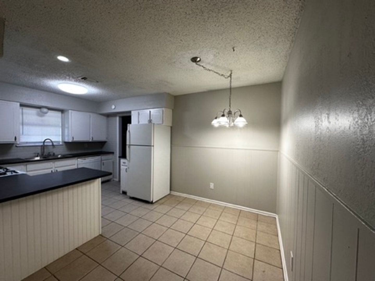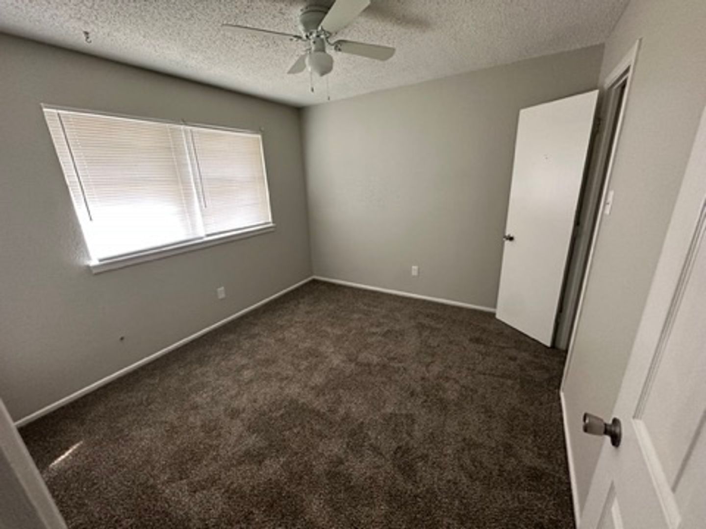 Spacious and inviting 3-bedroom, 1-bath home with two living areas and a fireplace. Features include tile flooring throughout main areas, carpeted bedrooms, a generous kitchen with ample counter space, laundry room with washer/dryer connections, and a large fenced backyard with covered patio and storage shed. Located within walking distance of a park and elementary school.