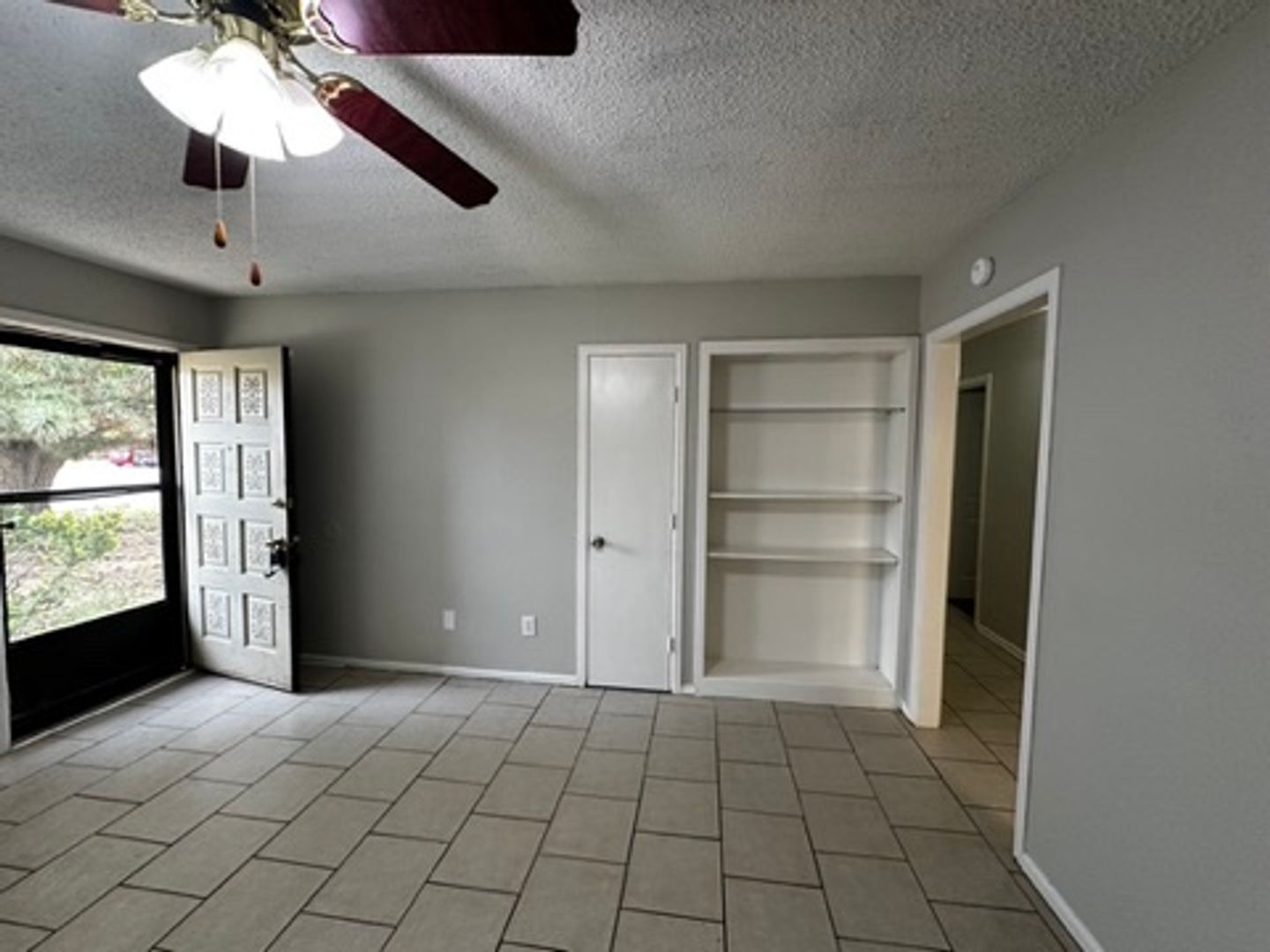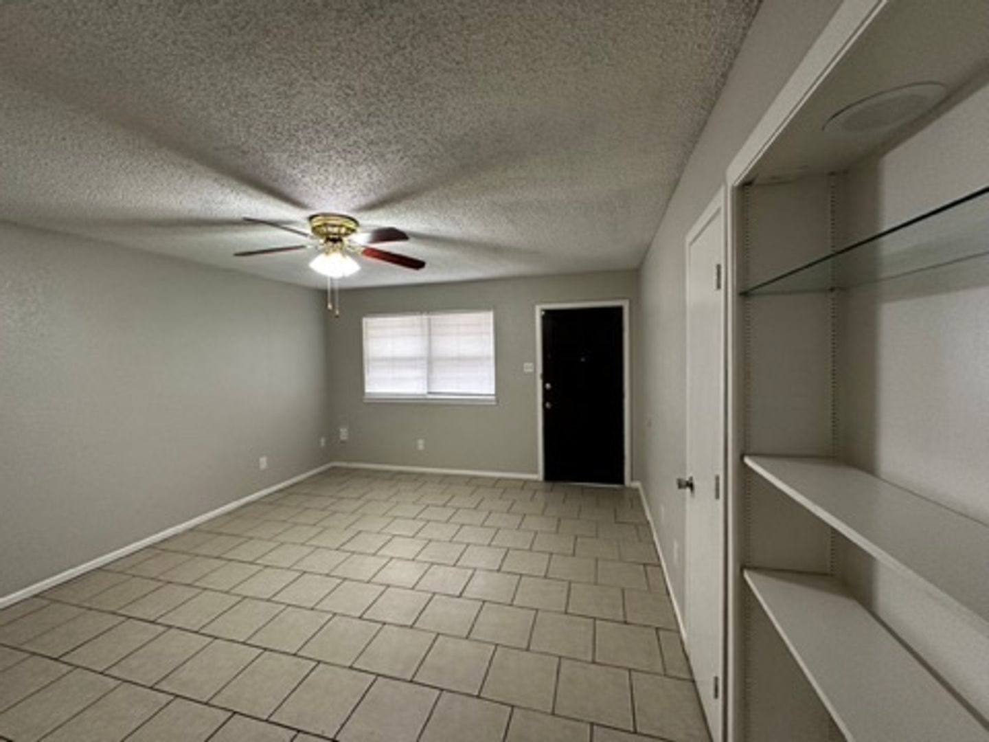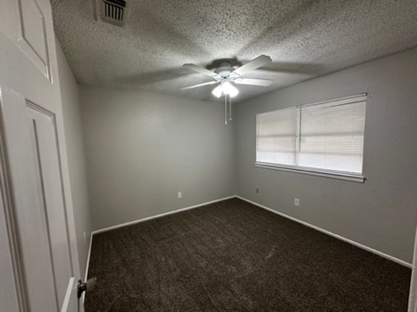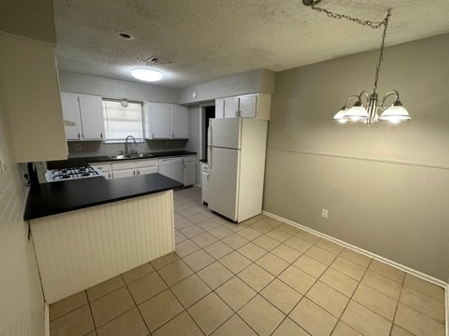 Spacious and inviting 3-bedroom, 1-bath home with two living areas and a fireplace. Features include tile flooring throughout main areas, carpeted bedrooms, a generous kitchen with ample counter space, laundry room with washer/dryer connections, and a large fenced backyard with covered patio and storage shed. Located within walking distance of a park and elementary school.