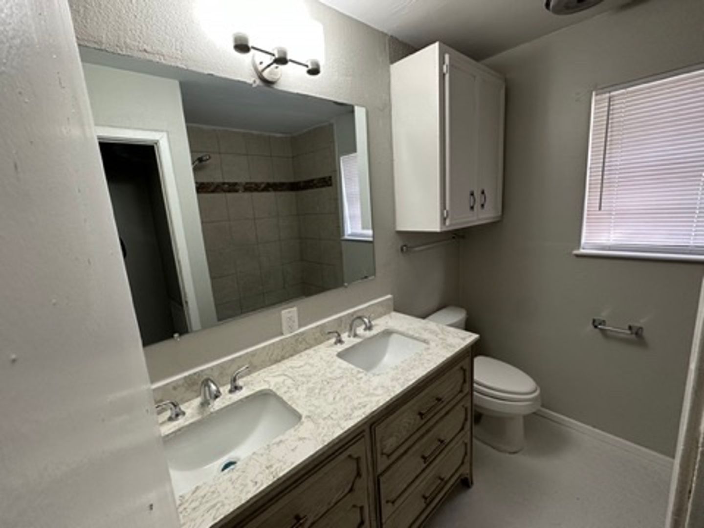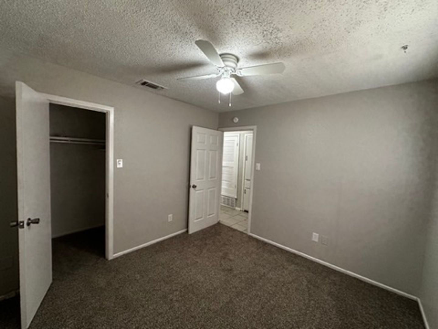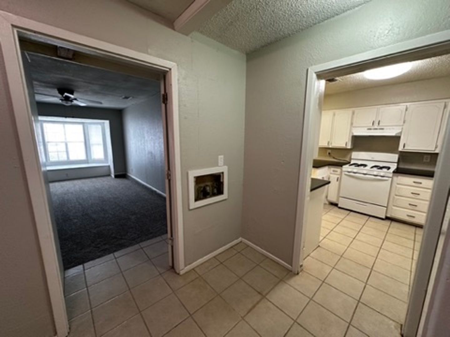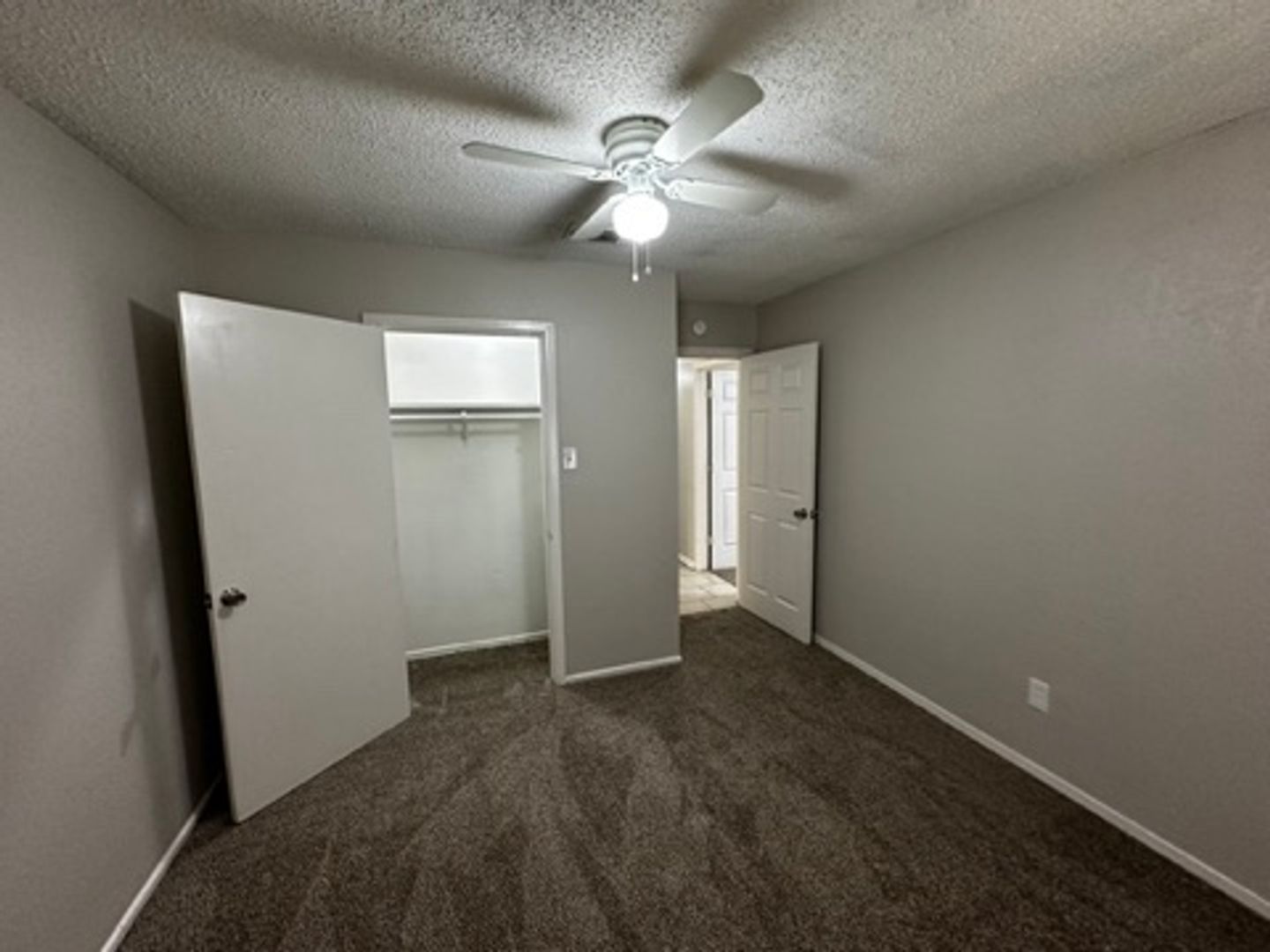 Spacious and inviting 3-bedroom, 1-bath home with two living areas and a fireplace. Features include tile flooring throughout main areas, carpeted bedrooms, a generous kitchen with ample counter space, laundry room with washer/dryer connections, and a large fenced backyard with covered patio and storage shed. Located within walking distance of a park and elementary school.