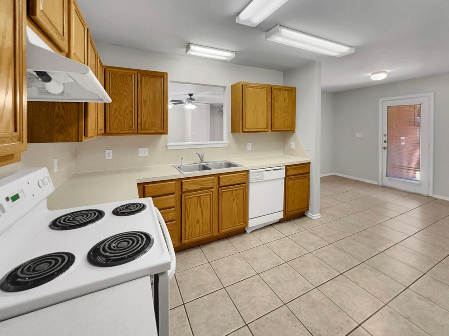Tile flooring runs throughout the living room, kitchen, and bathrooms for easy maintenance, while the carpeted bedrooms add a touch of warmth. The kitchen is equipped with a range and dishwasher, providing everything you need for everyday living and casual entertaining.
