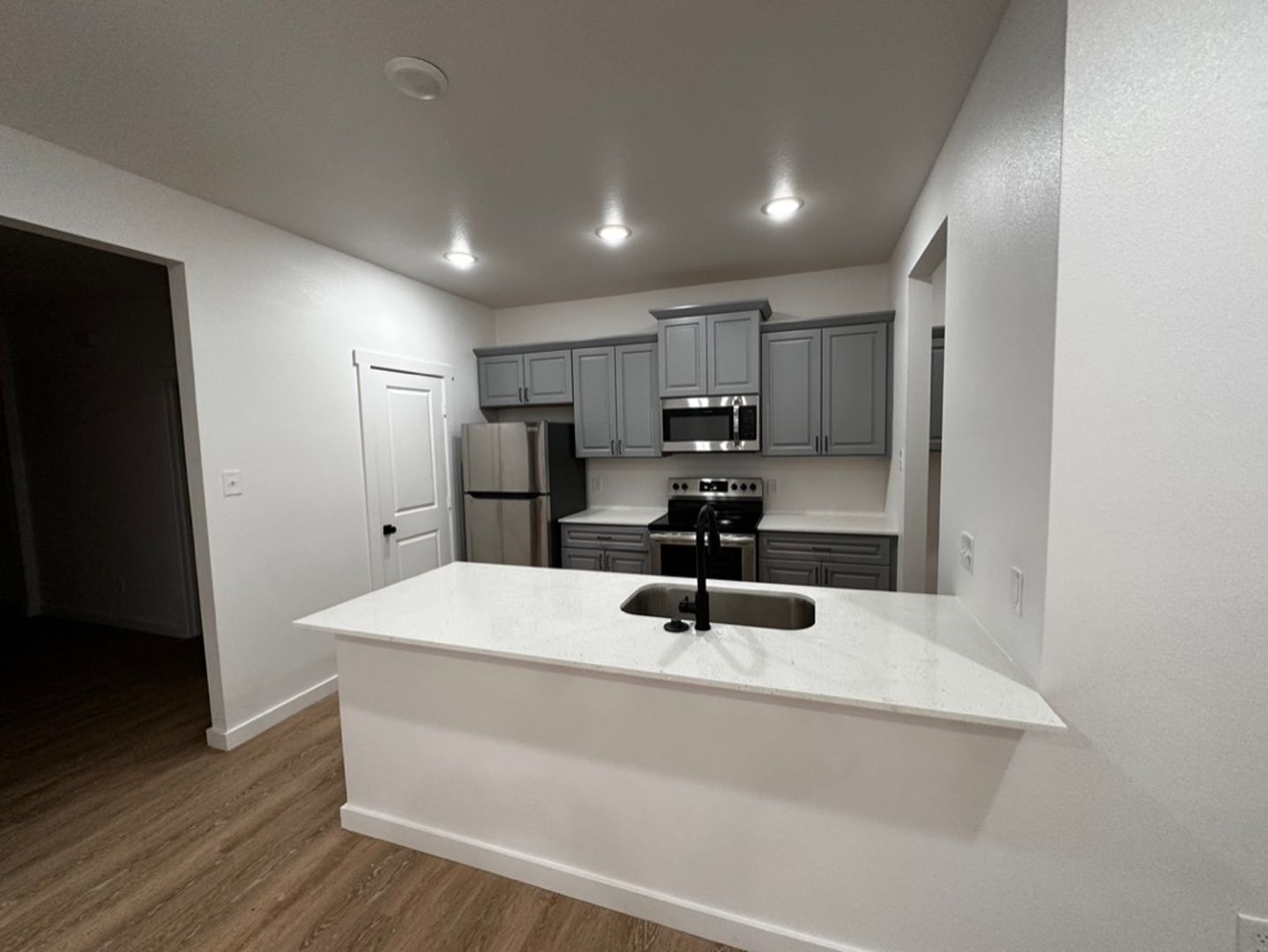 Durable luxury vinyl plank flooring throughout the living areas