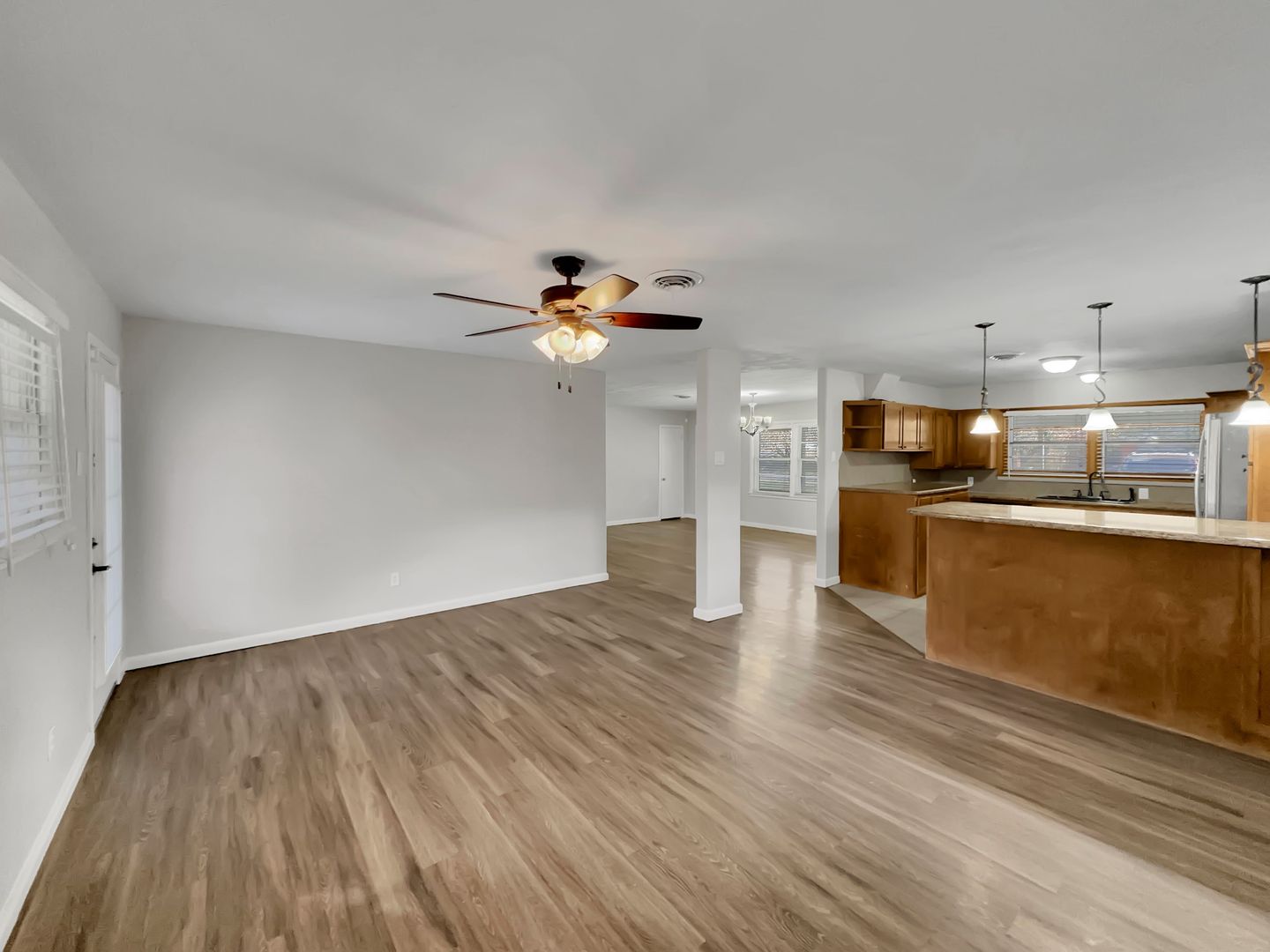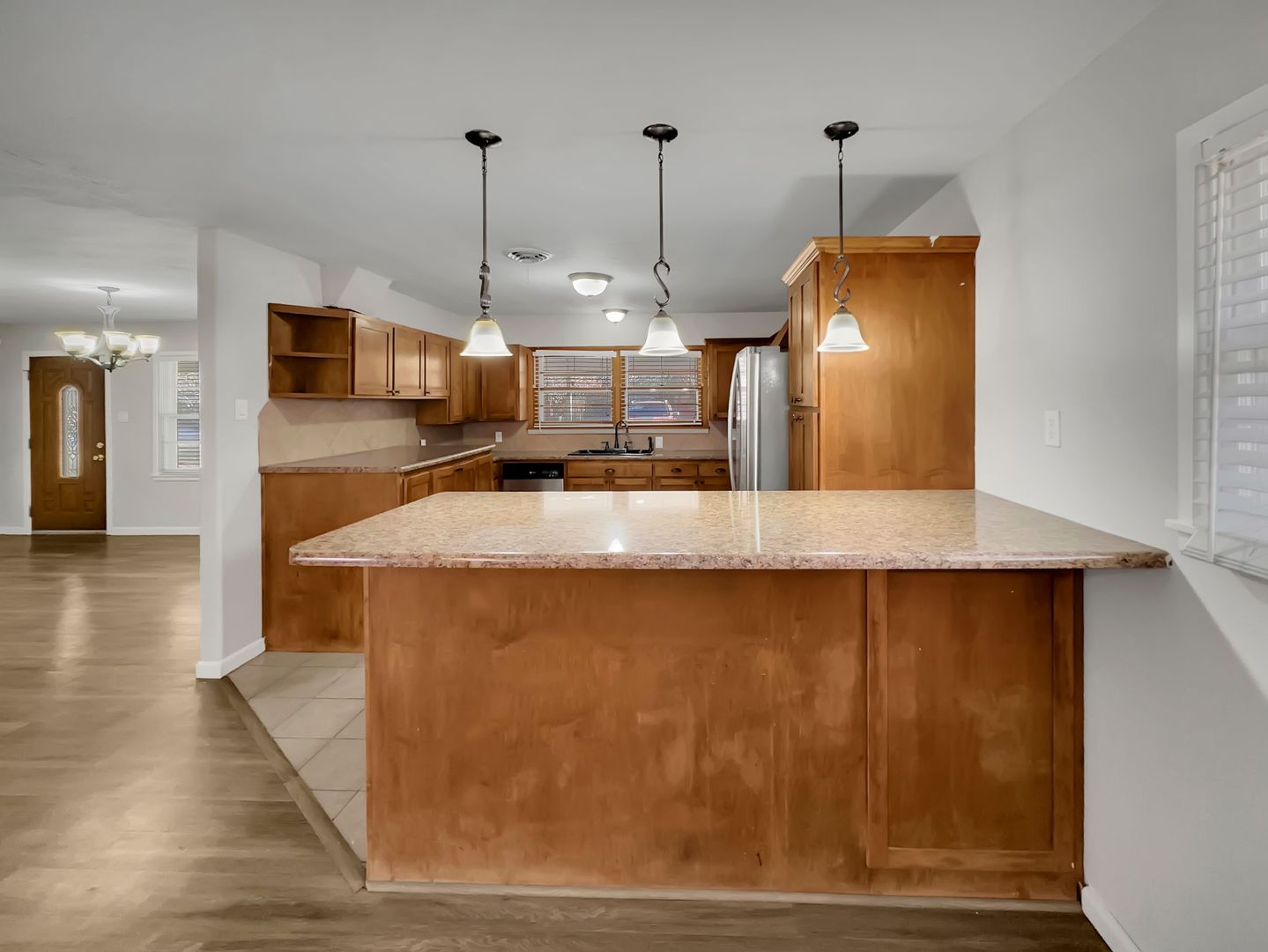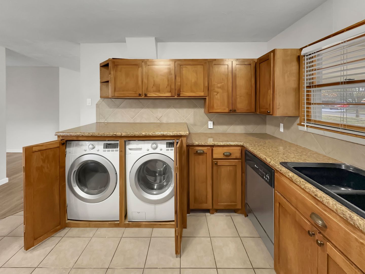 Inside, the home offers central heating and air, washer/dryer connections, vinyl plank flooring, and tile flooring in the bedrooms and bathrooms for easy maintenance and a clean, modern feel. The kitchen is equipped with granite countertops, providing both style and functionality, while the spacious living and dining areas make the home ideal for relaxing or hosting guests.