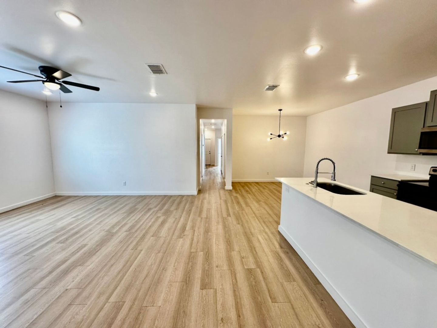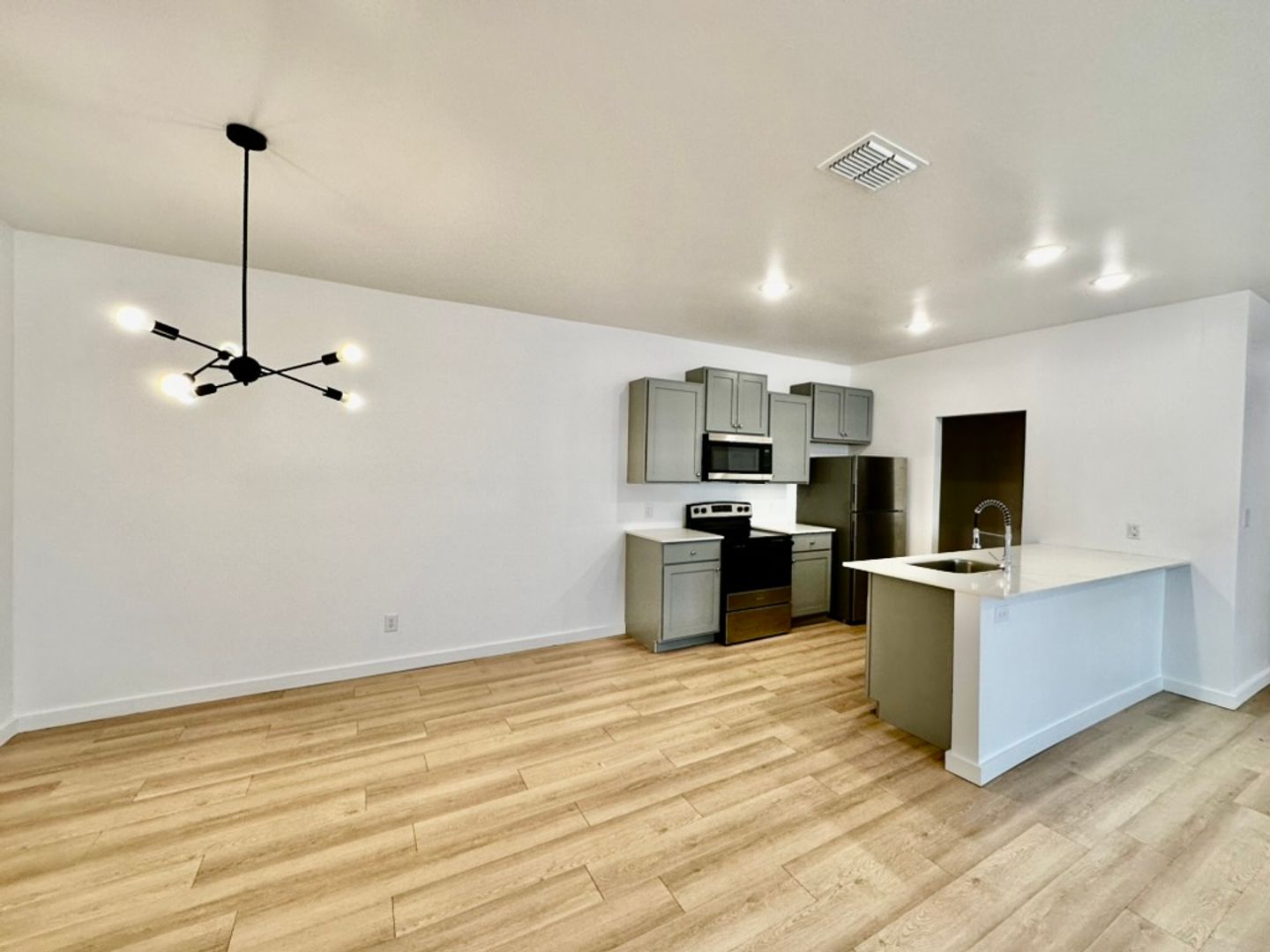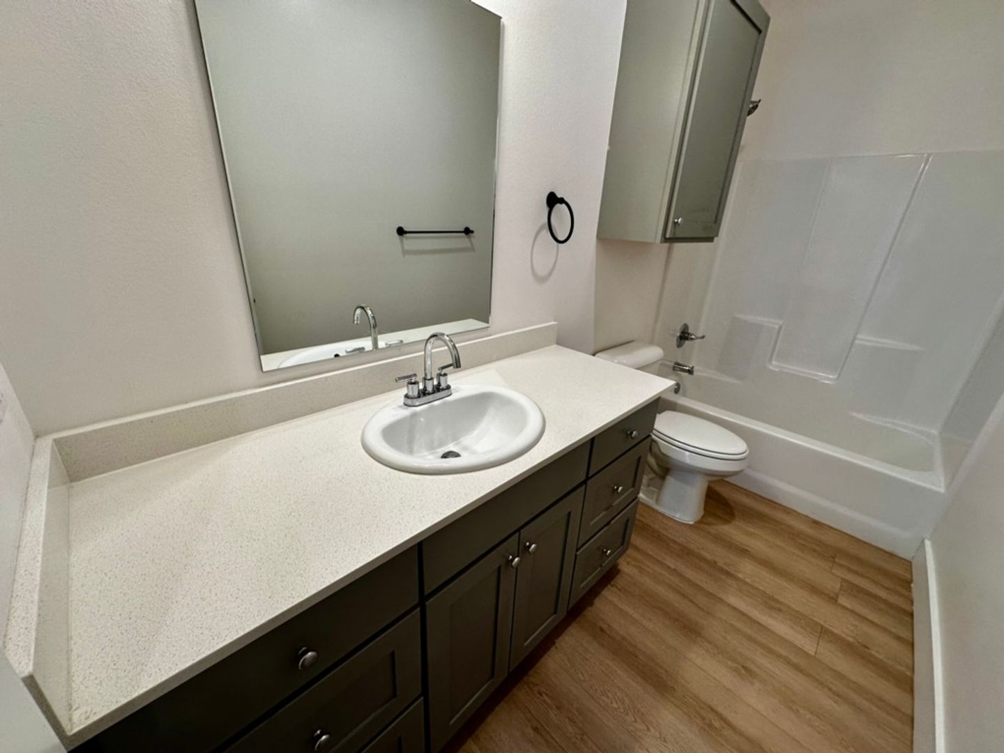 Modern vinyl plank flooring throughout