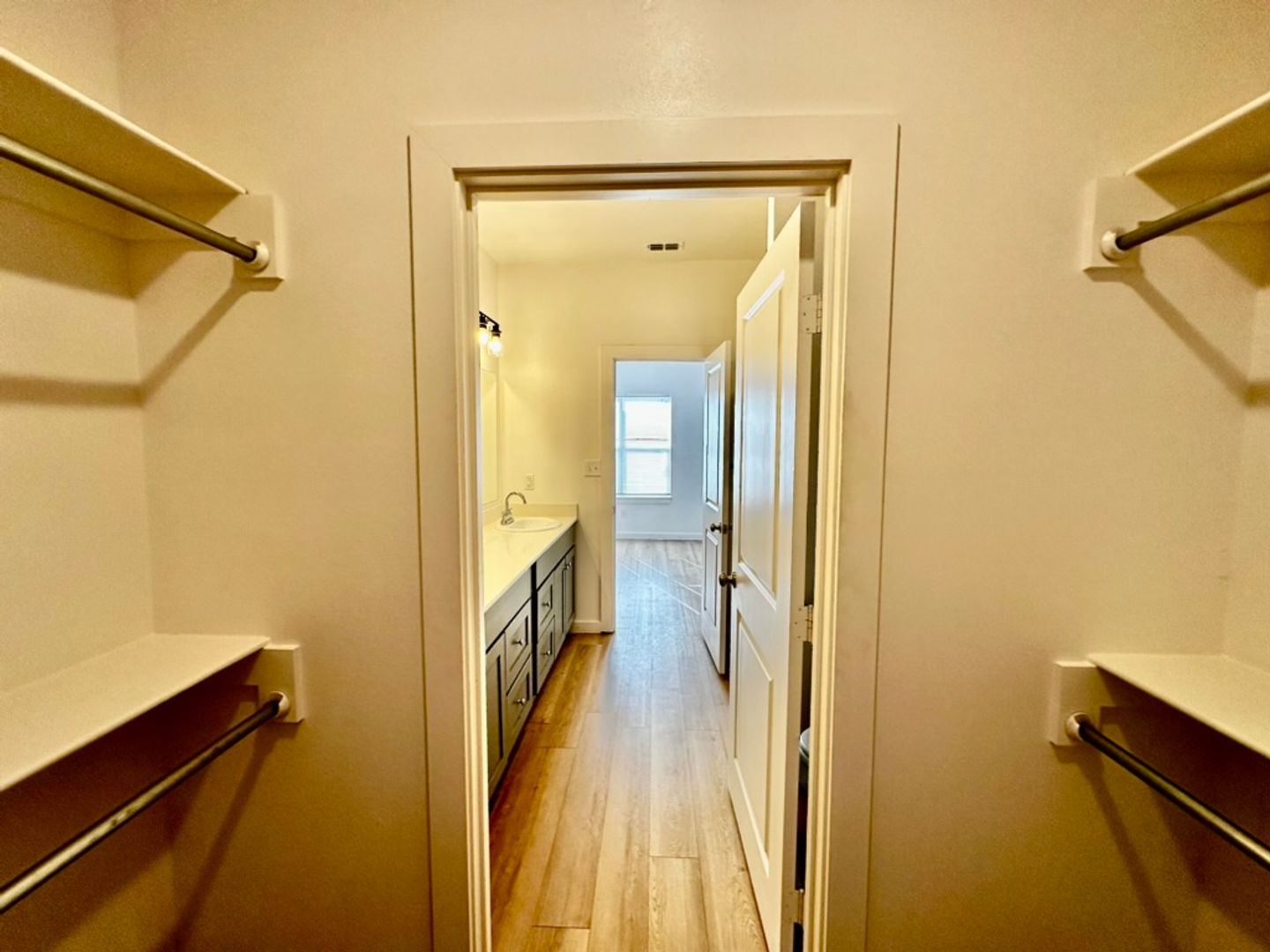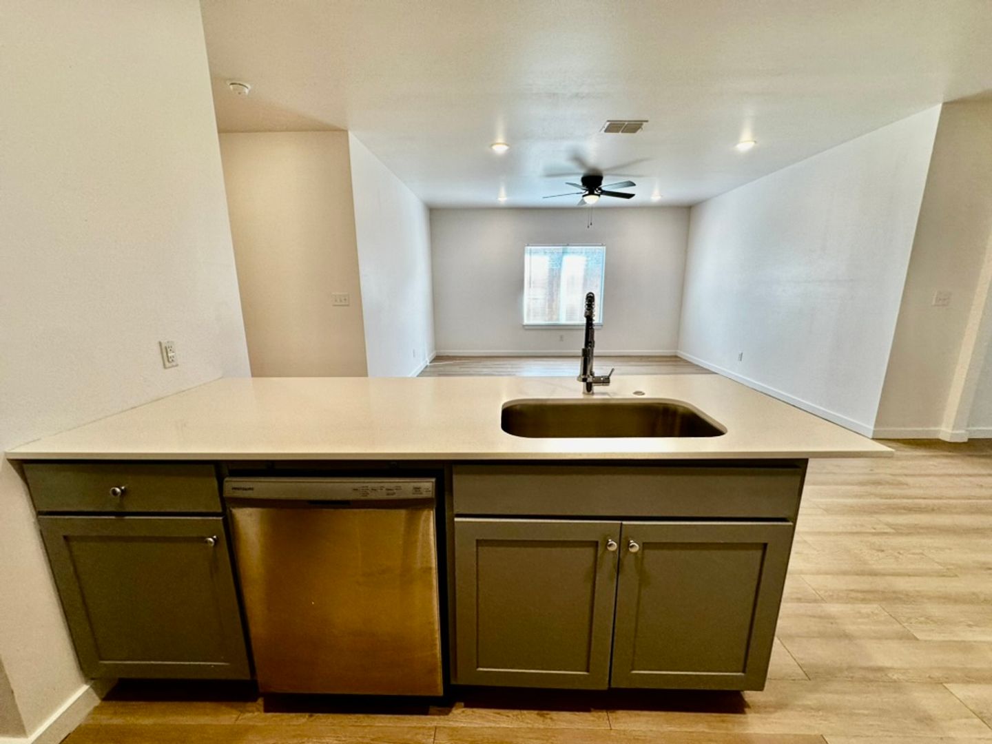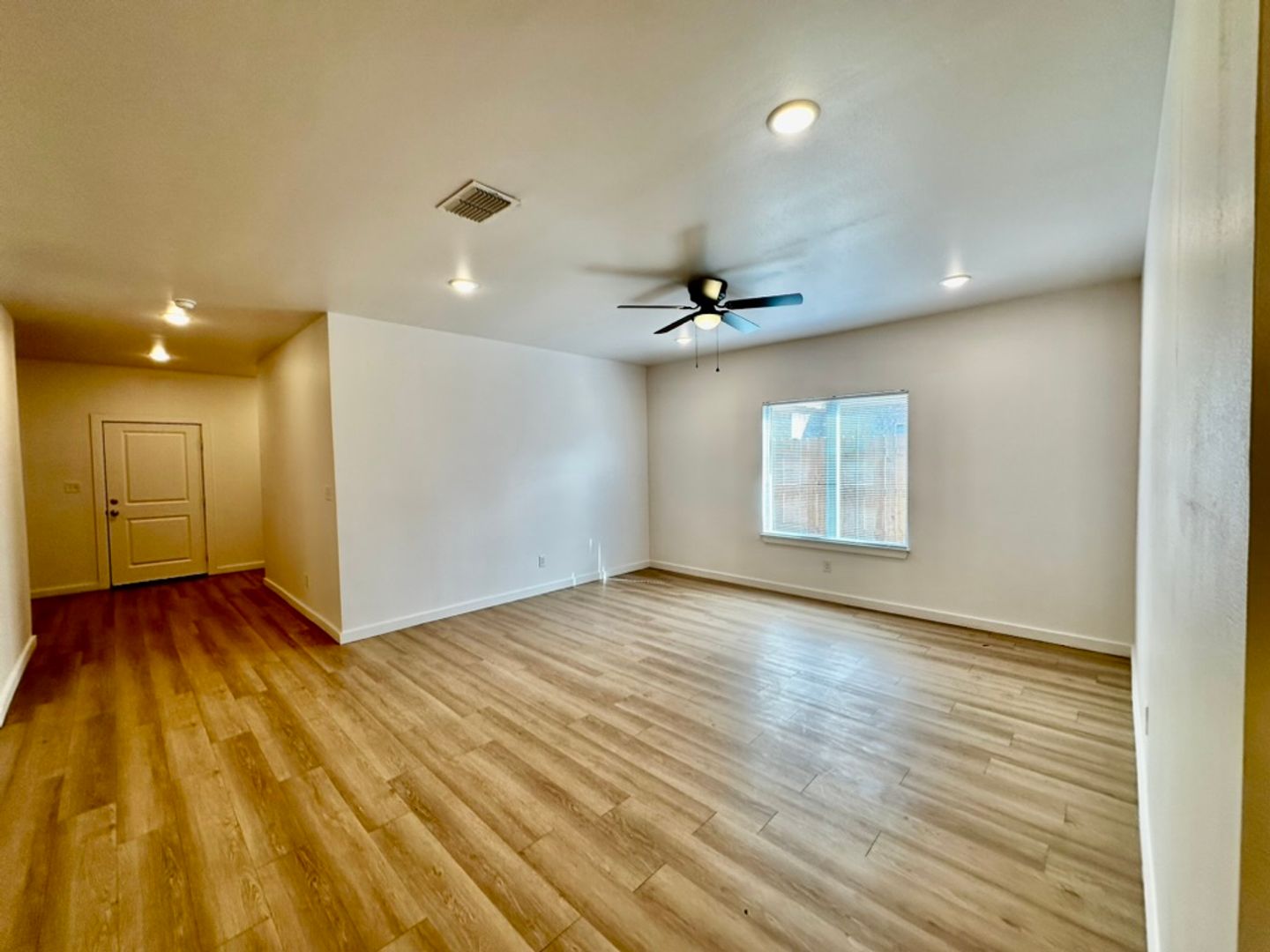 Modern vinyl plank flooring throughout